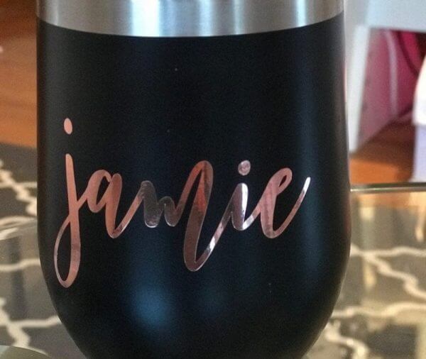 - Personalization. But wait…it gets even better! With every order, you have the option to add an adhesive vinyl sticker that can be customized to each of your bridal party members. So, they can have their name showcased in beautiful calligraphy among their cup.