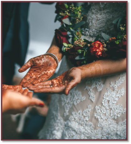 If you are looking to add an artistic touch to your wedding, Henna would be perfect. Henna can last for around two weeks up to one month, so it is perfect if you are looking for some extra decoration on yourself temporarily. If you are interested, contact Mehandi at henna-fashions.com or call 614-600-3366.