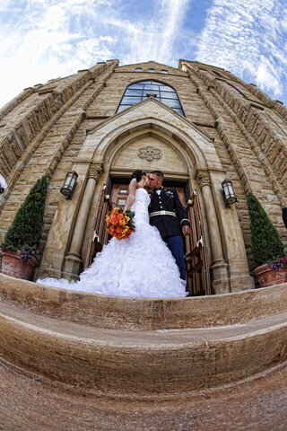 If you are having your wedding at a church then moving to a reception you are going to have that time to stop someplace. We leave it up to the couple on what kind of environment they would want to go to. We give them suggestions if they want a city scape, like for example the downtown Columbus skyline is beautiful. At one point we actually put 60 people on a bus and bused everybody down and did pictures at a nice city park and went on top of a tall building, the chase building. We had the conncetions to make that happen.