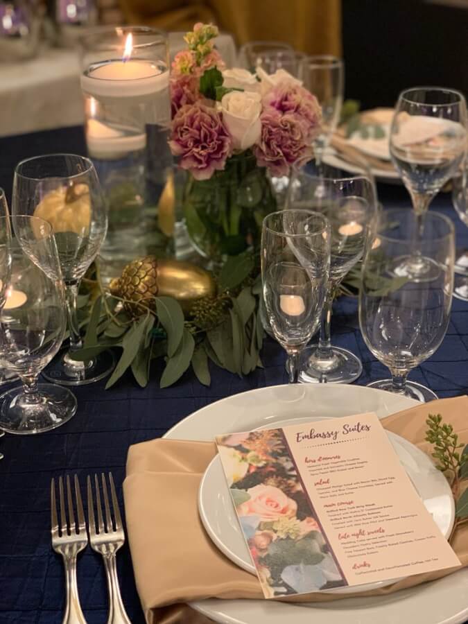 Embassy Suites Dublin features a beautiful Grand Ballroom as well as 284 two-room suites located amidst the charm of downtown Dublin, Ohio. Wedding planning tools, high quality in-house catering, transportation options, daily breakfast and evening reception are just a few of the many reasons to book your next event at this centrally-located venue! Couples may host an event of up to 350 guests and dance the night away in their 6,100 sq. ft. ballroom, including a solid wood dance floor with open floor plan, and even add customizable uplighting to illuminate the room to your taste. Your wedding manager is also pleased to offer special pricing for wedding room blocks of 10+ per night!